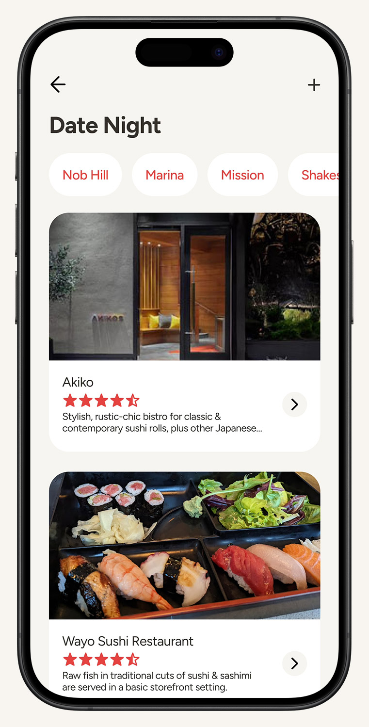 Group Table emerged from the belief that dining should be about getting together. So we set out to make the first AI powered social-restaurant app. We wanted to make something that gets to know everyone's preferences, so it can make smart recommendations, so you spend less time finding and more time dining!